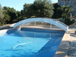 Les abris bas amovibles / relevables sont le plus souvent en forme de voute ce qui leur confère alors une résistance au poids accrue (principe de la coquille d’œuf), ils sont donc particulièrement adaptés aux régions neigeuses. Certains fabricants d’abris proposent également des modèles amovibles à pans coupés, au design différent. Les abris relevables présentent une plus grande souplesse d’installation qui leur permet de s’adapter à des piscines de formes très variées. En effet, lorsque l’on choisi une piscine au design original, on ne pense pas toujours aux contraintes que cela induira pour la couverture future. Heureusement l’abri bas relevable sait s’adapter à la piscine sur mesure. Certains constructeurs proposent même l’installation d’abris amovibles spécialement adaptés aux piscines hors sol en bois, y compris de forme octogonale. L’abri est alors posé sur les margelles de la piscine.